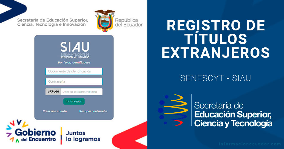 Registro en línea de títulos extranjeros en Senescyt - SIAU